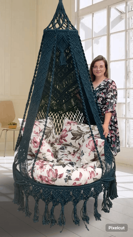 Вы можете заказать или приобрести из актуального наличия уникальный предмет интерьера - подвесное кресло-шатер, ручной работы в технике "Макраме".